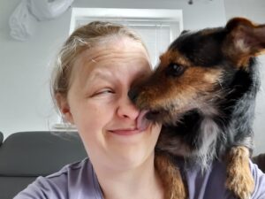 Das sind wir heute mit unserer Hündin Bella, sie kam schwer krank aus Sardinien zu uns, wir haben sie aufgepeppelt und nun ist sie die treue Seele unserer Tierbestattung.