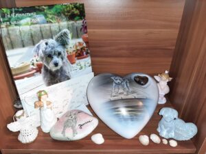 Als dann 2019 unsere geliebte Affenpinscher-Mix Hündin Jeanna verstorben ist, konnten wir Sie würdevoll einäschern lassen und sie hat nun bei uns zuhause (da wo sie am liebsten war) im Kreise Ihrer liebsten Ihre letzte Ruhe gefunden.